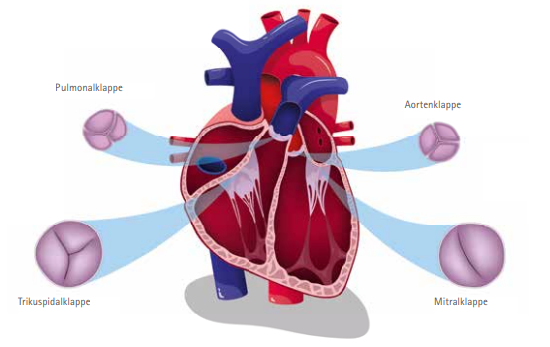 Aortenklappe, Mitralklappe, Trikuspidalklappe, Pulmonalklappe. Jeder Mensch hat vier Herzklappen. Sie sorgen mit dafür, dass unser Blutkreislauf „rund läuft“. Damit alle unsere Organe mit Sauerstoff und Energie versorgt werden, pumpt der Herzmuskel ständig Blut durch den Körper. Sauerstoffreiches Blut fließt von der linken Herzhälfte in die Arterien. Sauerstoffarmes Blut wird über die Venen zurück in die rechte Herzhälfte transportiert. Von dort aus strömt es weiter in die Lunge, wo es wieder mit „Frischluft“ angereichert wird. Die Herzklappen sind in diesem Kreislauf die Ventile. Sie gewährleisten, dass das Blut in die richtige Richtung strömt.