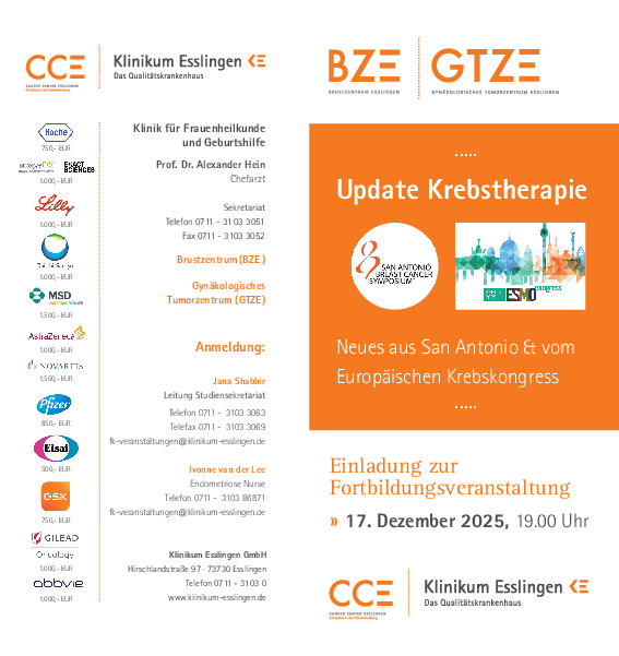 Prof. Dr. Alexander Hein lädt zur Fortbildungsveranstaltung im Forum (Haus15) des Klinikums Esslingen ein.